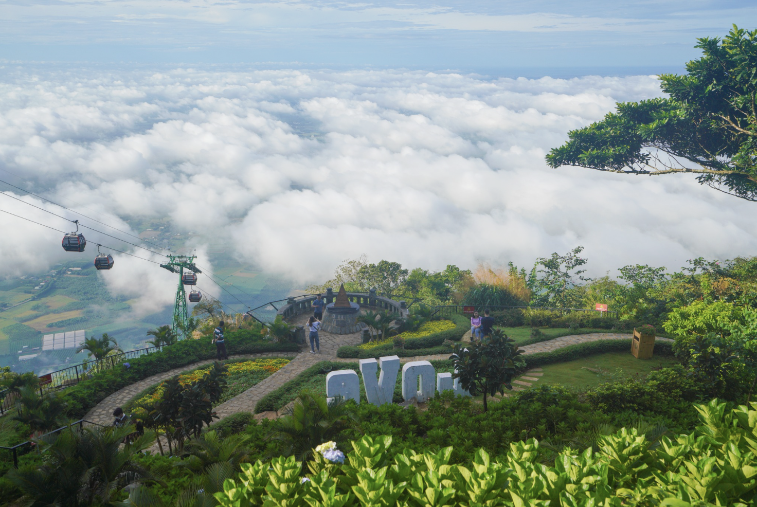 Tận hưởng khung cảnh mây bồng bềnh, không khí mát lạnh và check-in tại Đỉnh Núi Bà Đen cao 986m – biểu tượng thiêng liêng của miền Nam.